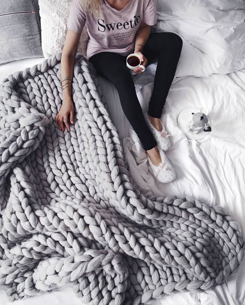 - в спальню можно связать мягкое и теплое покрывало, сшить светонепроницаемые шторы.