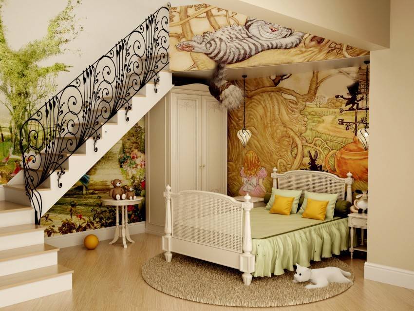 - Однотонным стенам комнаты можно добавить яркие краски, расписав их любым изображением.