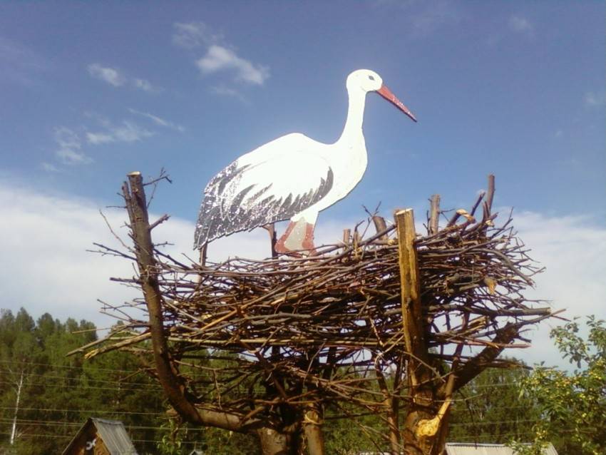 - Изображения птичек. Они могут быть любого размера: аист или петух примостится под деревом, а дятел — на заборе или стволе.