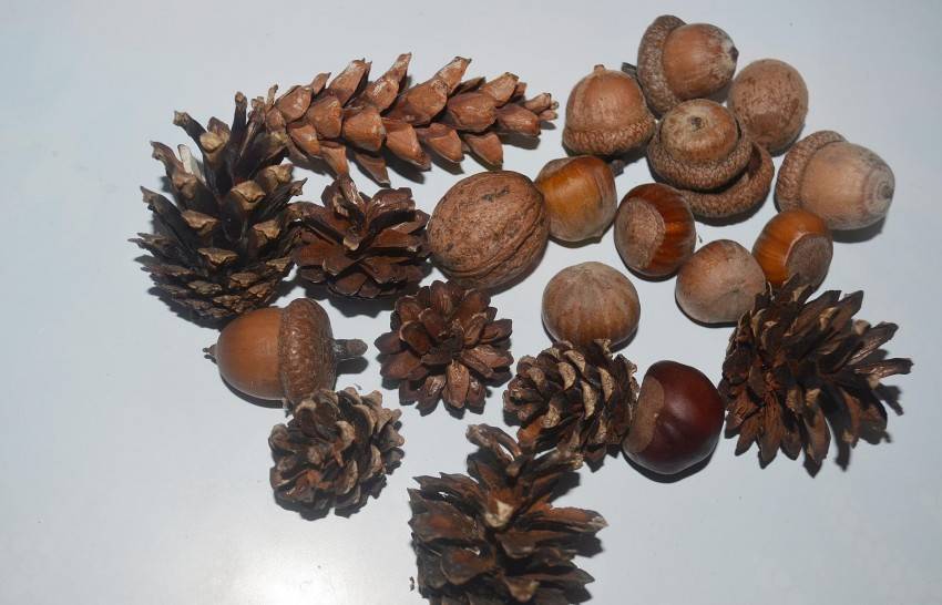 - Желуди и каштаны нужно просто сполоснуть и высушить естественным способом. Главное – провести их тщательный осмотр на наличие трещин, которые опасны тем, что в них могут жить насекомые. Мелкие жучки и червячки могут со временем переселиться и в другие плоды.