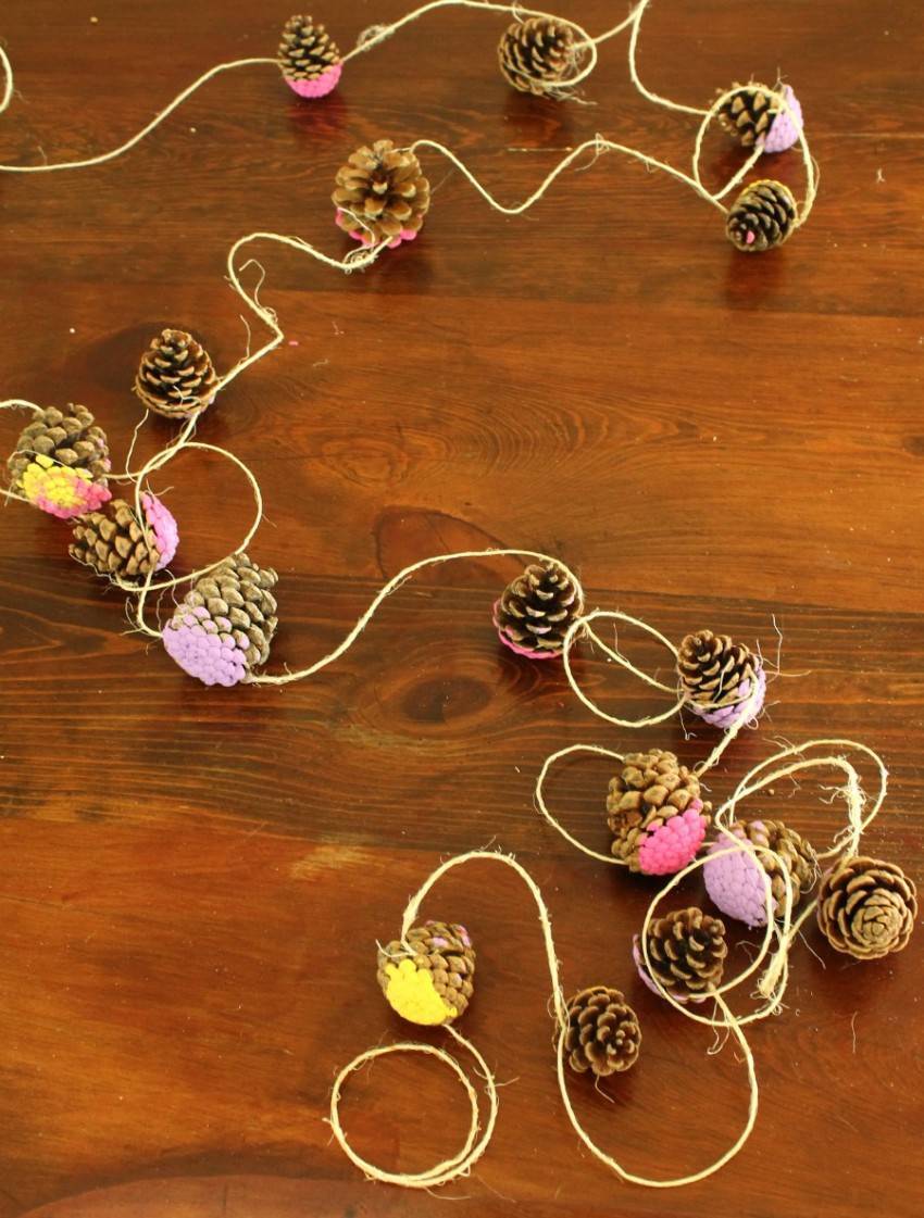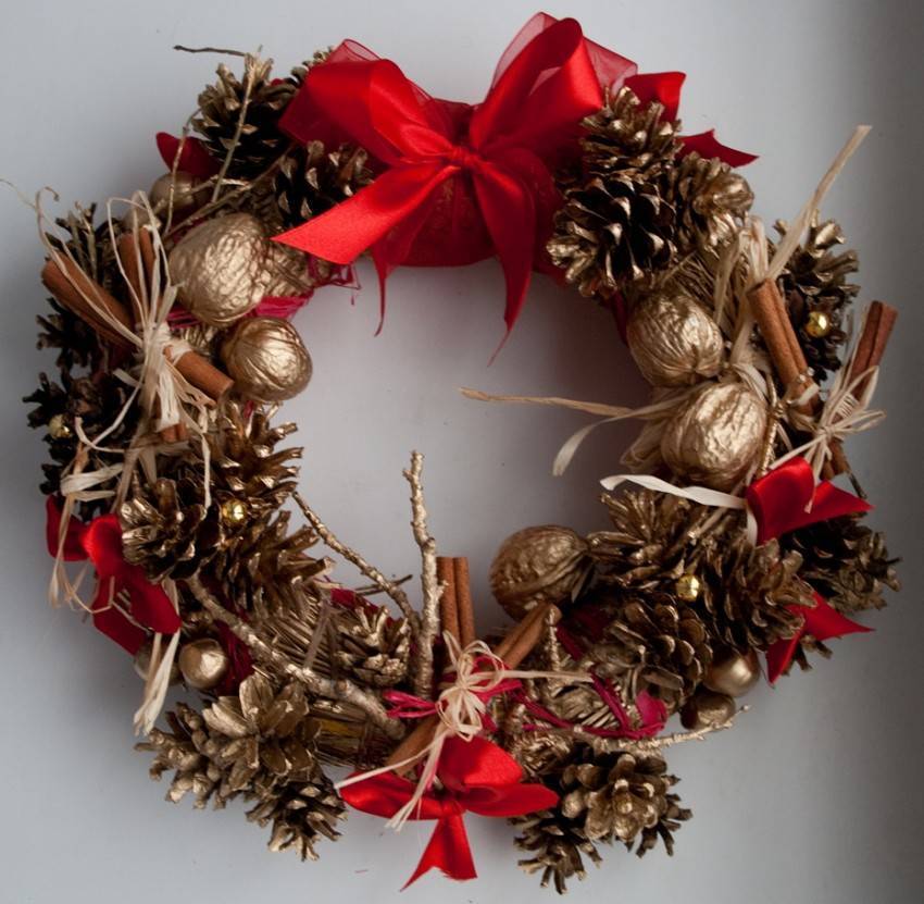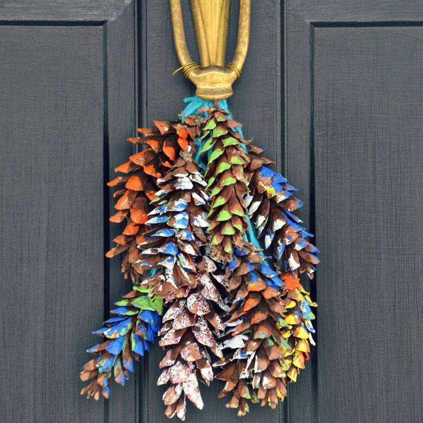Можете покрасить или покрыть лаком и праздничная поделка из шишек готова.