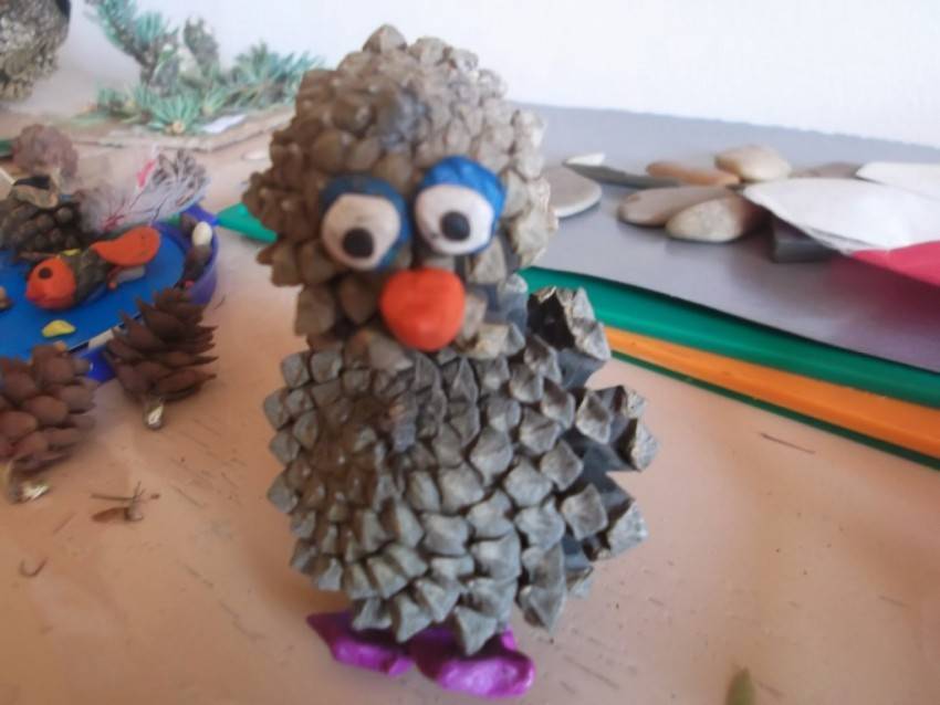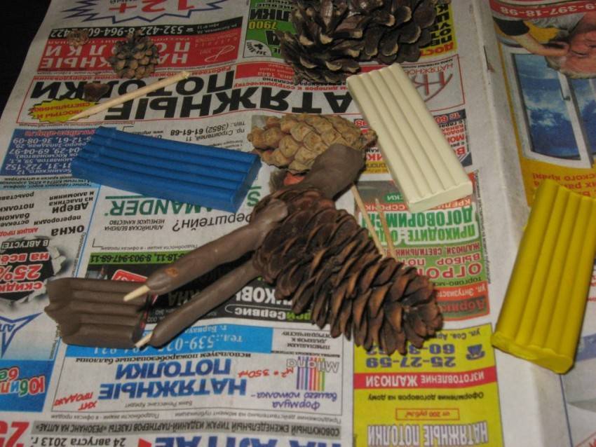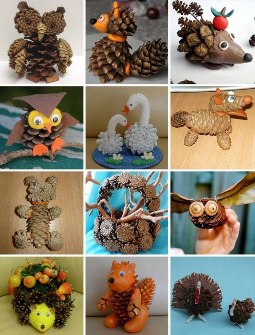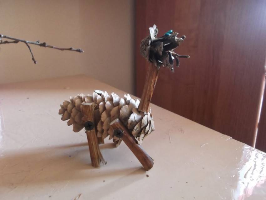 Бывают и сложные конструкции того, что можно сделать из шишек своими руками, самые интересные и неординарные решения потребуют сверления и разрезания. Внешний вид может прийти в негодность от таких манипуляций, чешуйкам свойственно отпадать или ломаться.