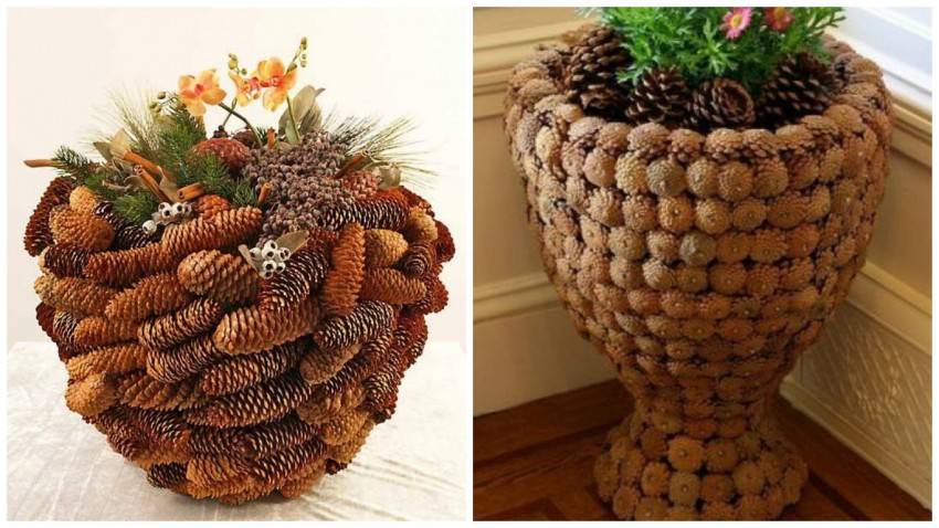 как сделать вазу из шишек пошаговоподелка ваза из шишек