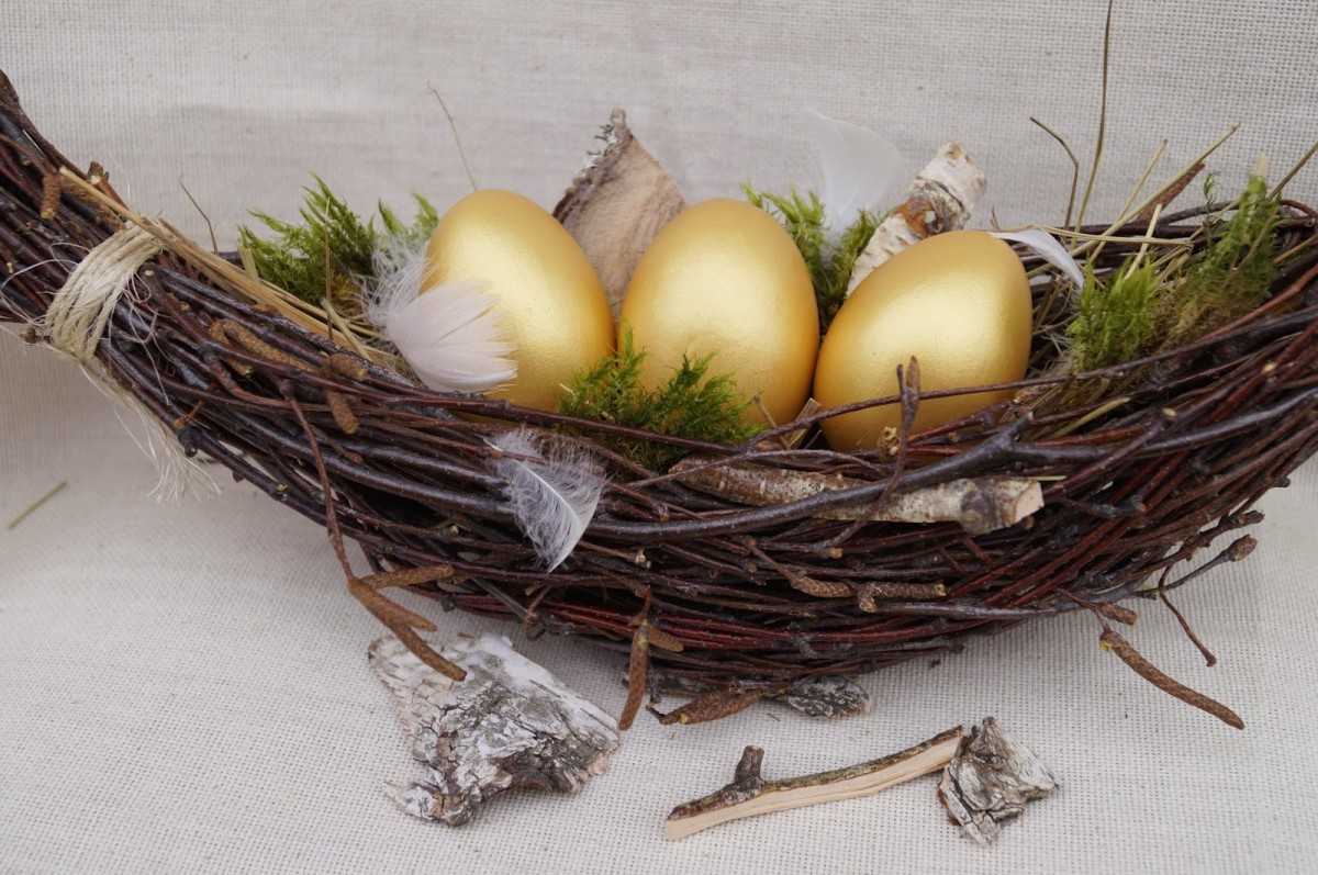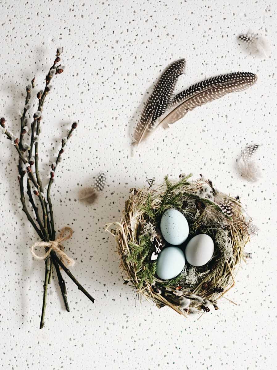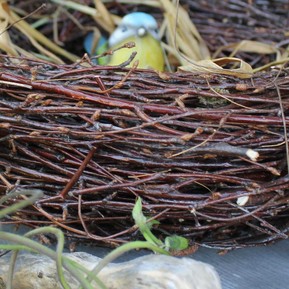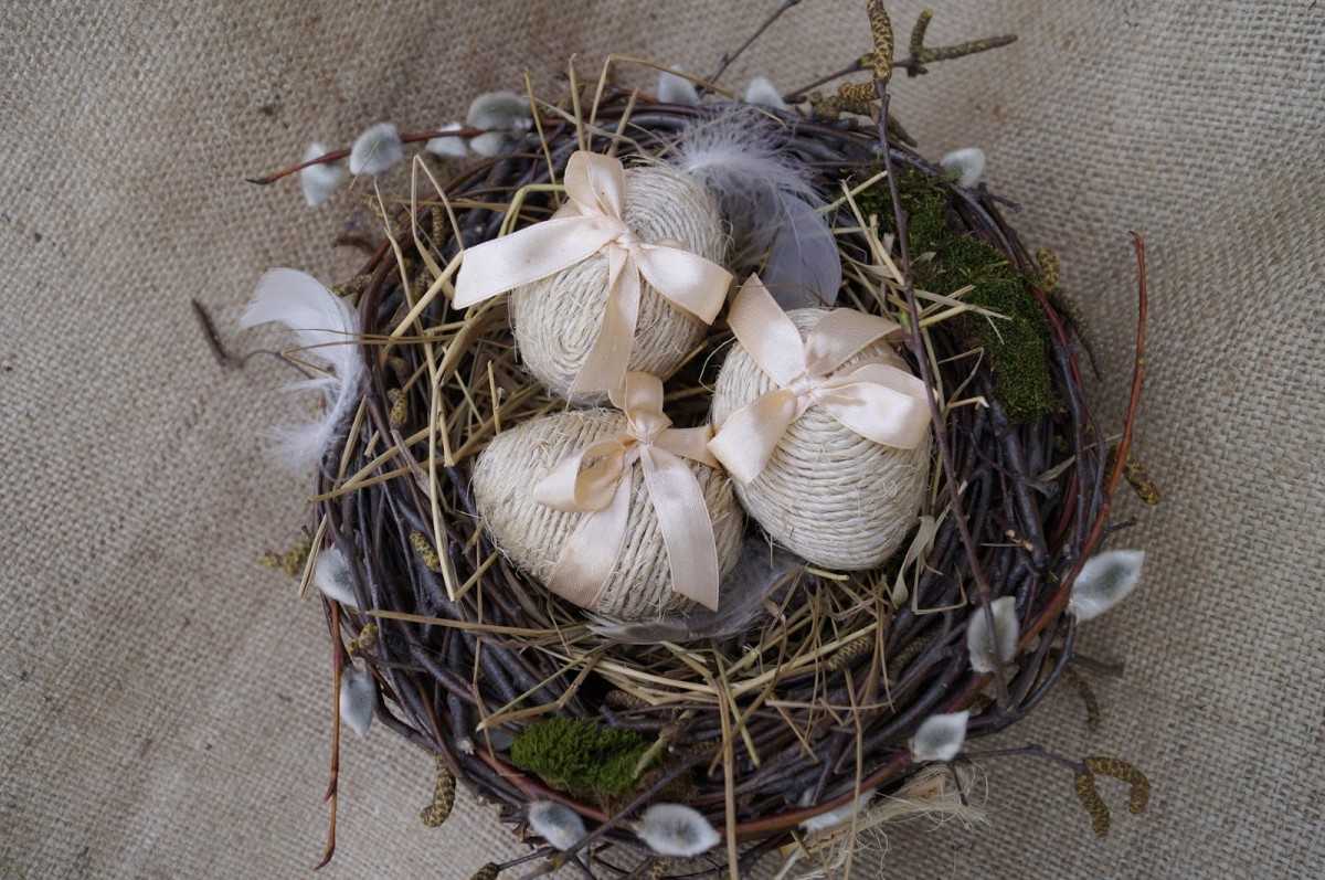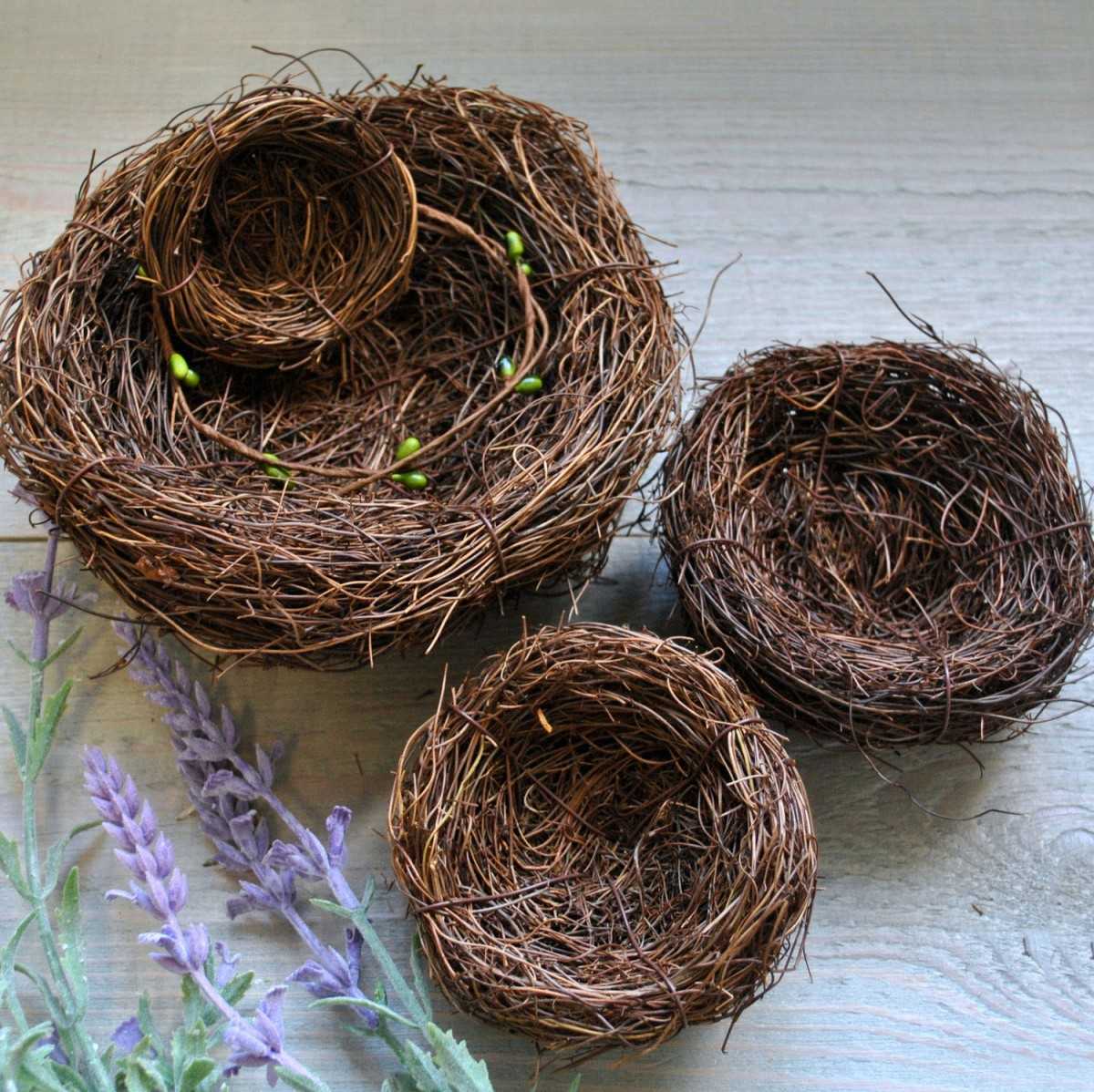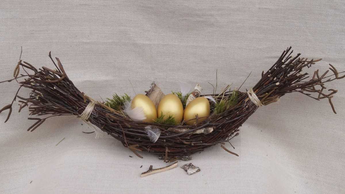 Отличным вариантом поделки из сухих веток деревьев своими руками станет птичье гнёздышко. Изделие можно использовать для украшения интерьера. Вещица станет подходящим декором стола на Пасху. Гнёздышко с птичками можно смастерить с детьми для участия в любой тематической выставке.