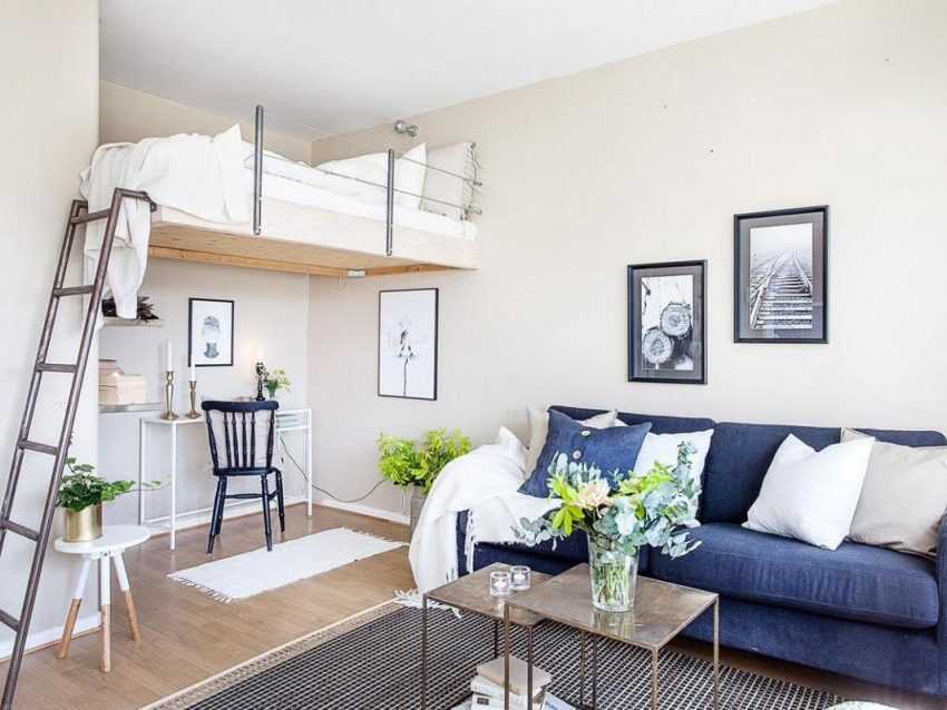 Спальная зона должна быть оформлена исключительно кроватью и тумбочкой. Это место приватности и уединения, не стоит привносить туда много лишних элементов. Гостиная зона более общественная, предназначенная для суеты и веселья. Следует позаботиться о достаточном количестве кресел, пуфиков или диванов, чтобы всем было где сесть.
