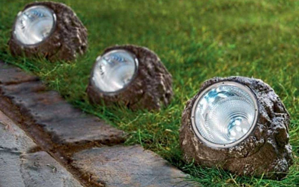 Для освещения дорожек на дачном участке отлично подходят светодиодные светильники, которые работают от солнечной батареи. Их преимуществом является отсутствие необходимости в укладке проводки. В каждый из элементов дополнительно встроен датчик освещенности, который активирует светильник только при наступлении сумерек. Периодически в таких светильниках потребуется замена аккумулятора.