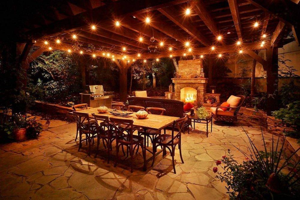 Если на участке есть терраса, то для нее также важно правильно реализовать освещение. В качестве идеи можно взять фото, приведенное выше
