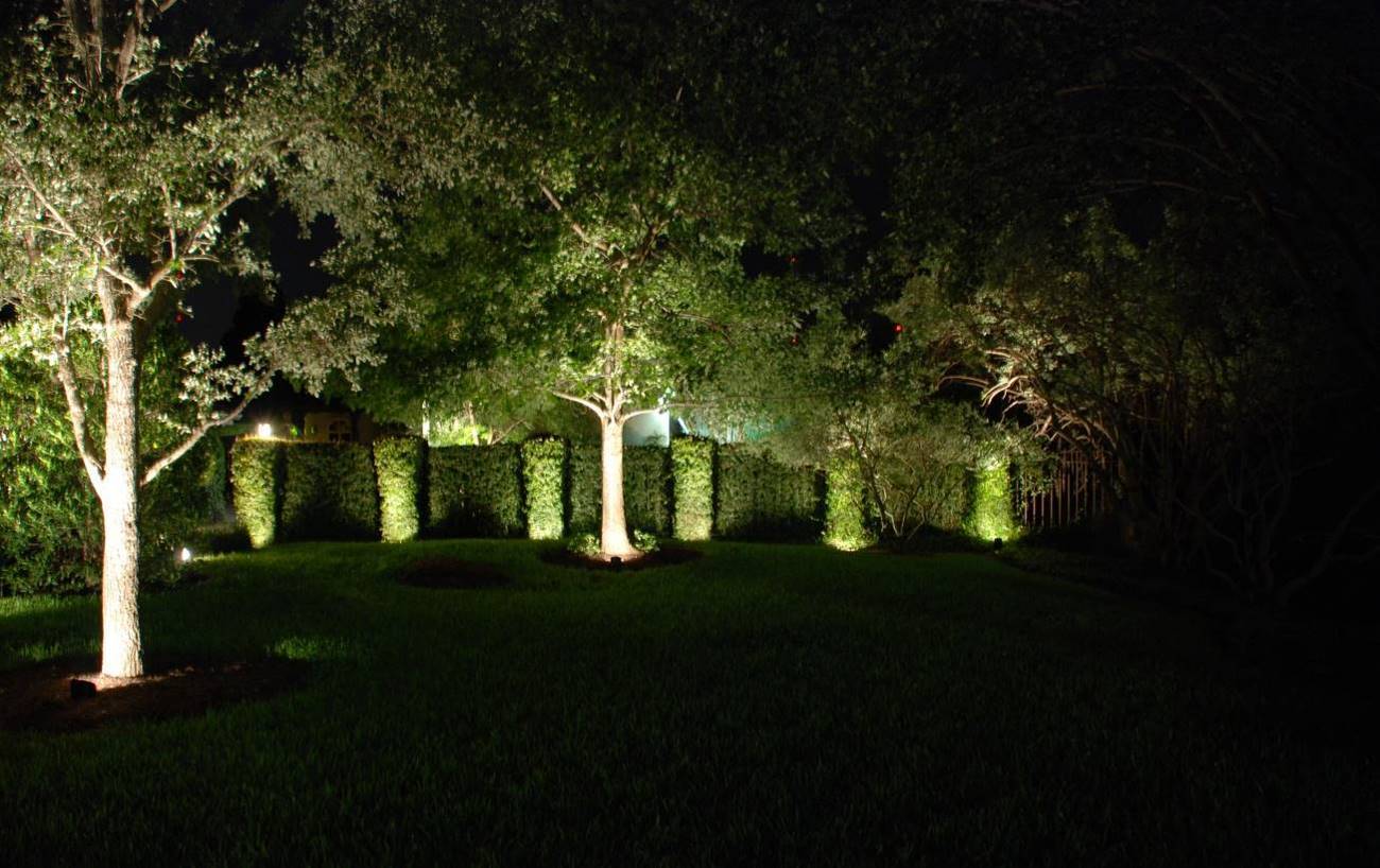 Кустам по нраву подсветка изнутри. Пышным деревьям с раскидистой кроной надо обустроить нижнеярусную подачу света.