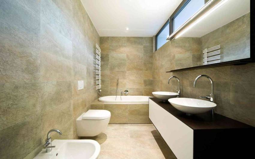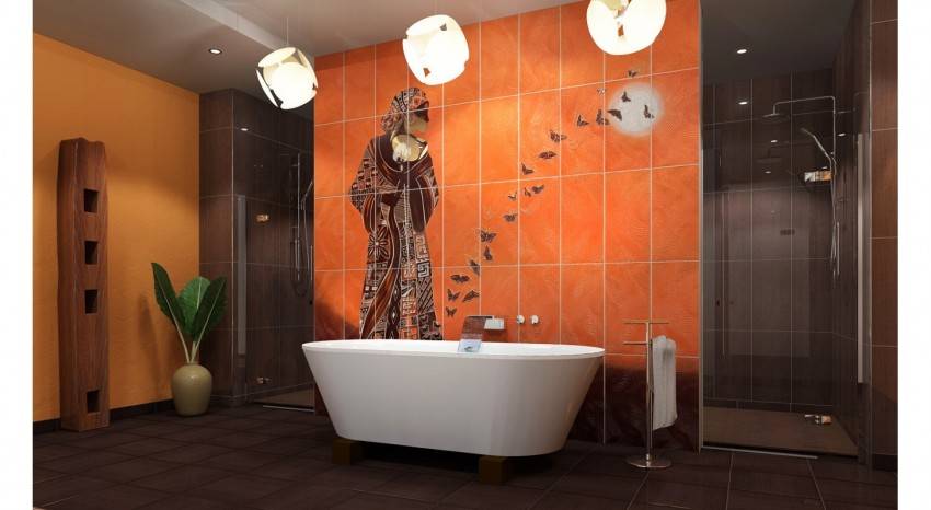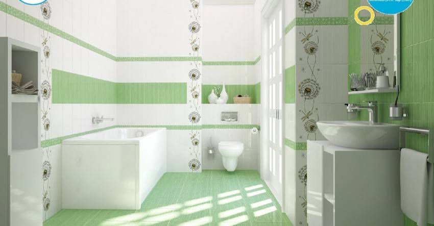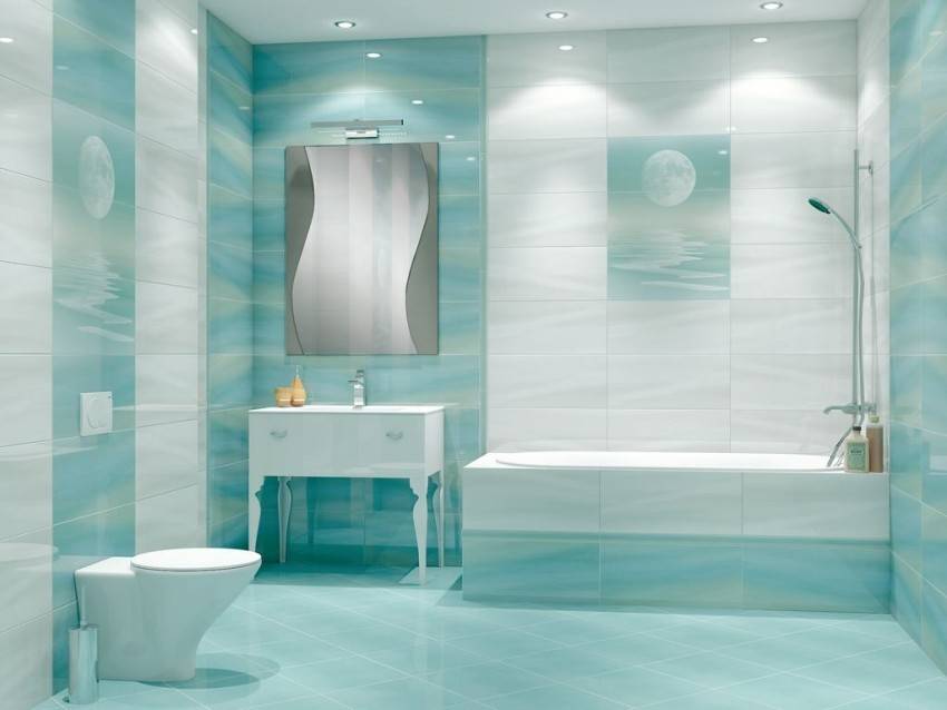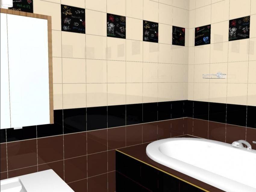 - варианты отделки ванной комнаты плиткой при комбинации бесчисленны;