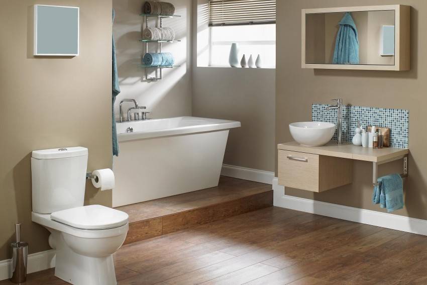 К напольному покрытию в ванной комнате предъявляется ряд требований: требуется, чтобы настил хорошо удерживал влагу, если вода в большом количестве прольется на пол, у соседей снизу не должны проявиться пятна от жидкости. Нежелательные варианты – это гипсокарттон и ДСП, они не обладают достаточной влагоустойчивостью и выдерживают значительный вес сантехники.