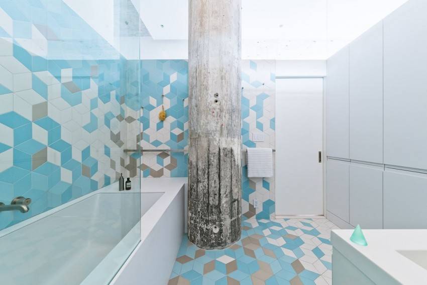 Комбинирование плитки в ванной — распространенный прием дизайнеров, при котором пространство зонируется.