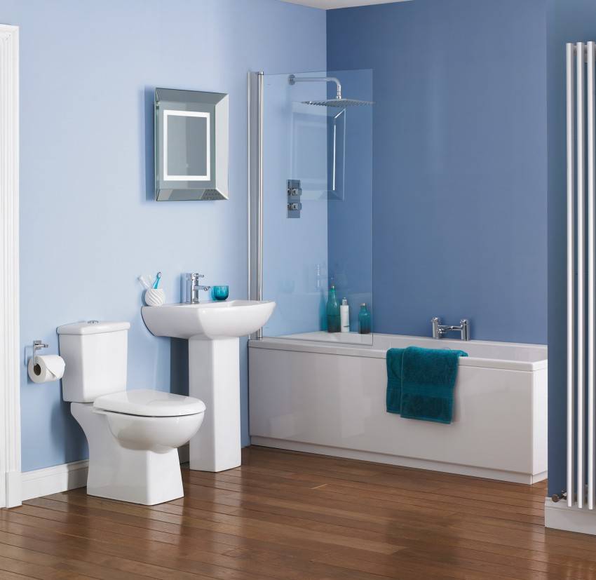 Визуально расширит ванную облицовка стен на ту же, что и экран, высоту