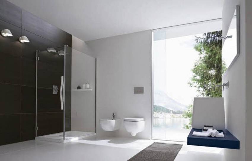 В просторных ванных на первый план выходит комфорт и красота. Кроме необходимых атрибутов, здесь можно установить и необязательные, но такие удобные вещи как биде, вторую раковину, шкафы-купе и этажерки. Такие помещения зонируют с помощью цвета, перегородок или подиума. Свободное пространство — повод поэкспериментировать с планировкой. Например, поставить ванну не у стены, а к окну или в центре.