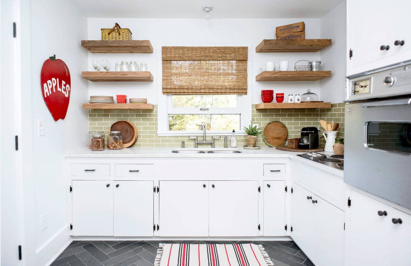 Полки должны сочетаться с мебелью и кухонной отделкой