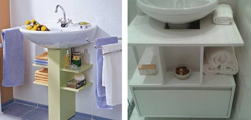 Если санузел раздельный, то лучше все-таки реализовать консольную конструкцию, описанную выше и не мудрить с изготовлением тумбы под раковиной из мебельных материалов. Близость влаги ни к чему хорошему не приведет.
