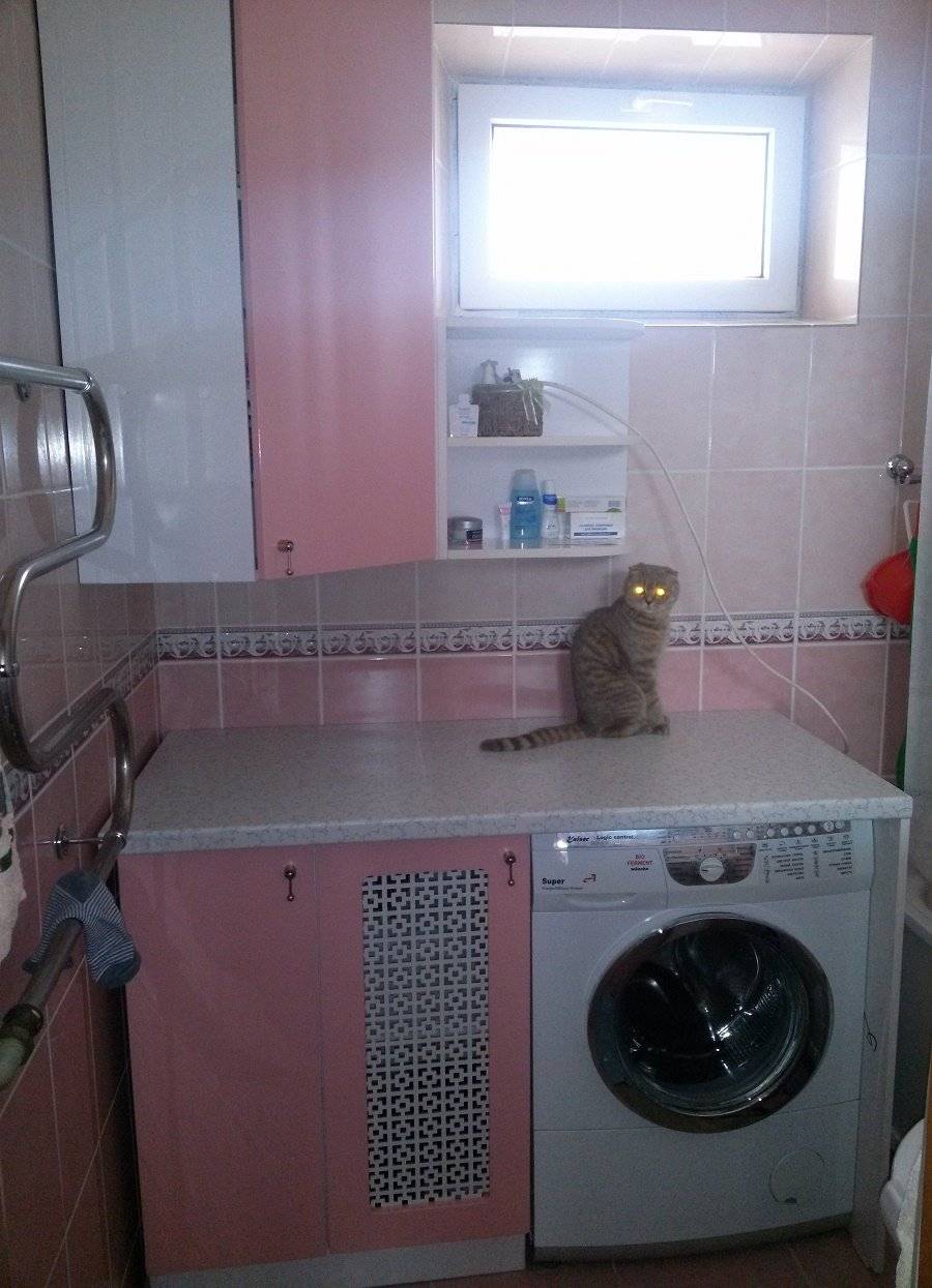 Хорошо смотрятся разновидности тумб с конструкцией, аналогичной кухонной. Достаточно просто адаптировать глубину. А высоту можно оставить такой же, она оптимальна для уровня мойки и встройки стиральной машины.