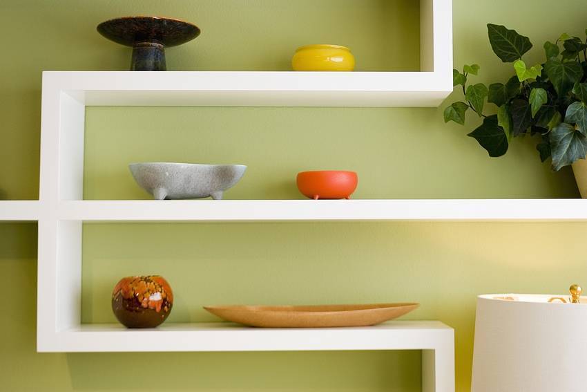 Эффекта контраста можно также добиться, если разместить темные полки на светлом фоне, или наоборот.