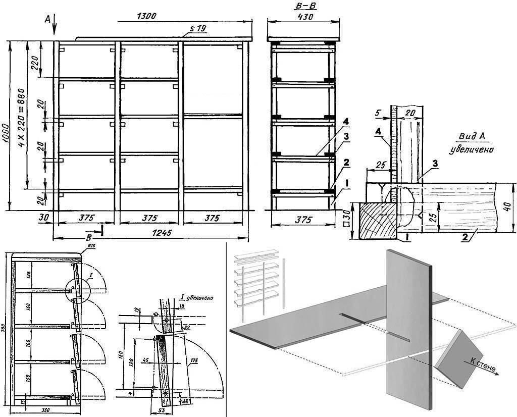 - чтобы предметы не падали, на переднюю, боковые части конструкции монтируют небольшие бортики;
