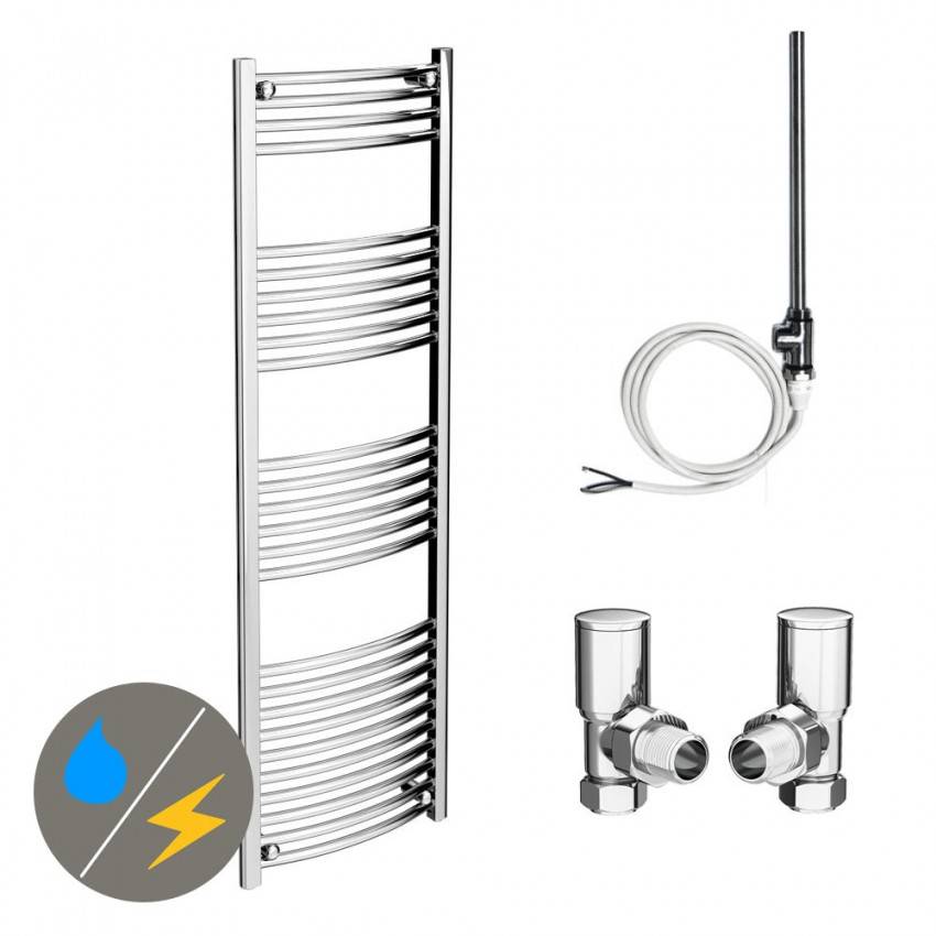 В 2012 году появились «гибридные» двухконтурные полотенцесушители. В сравнении с другими вариантами они более практичные, но стоимость у них на порядок выше. Подключение одного контура осуществляется к горячей водоснабдительной системе. Другой контур необходимо подключить к электрической сети с напряжением в 220 В.