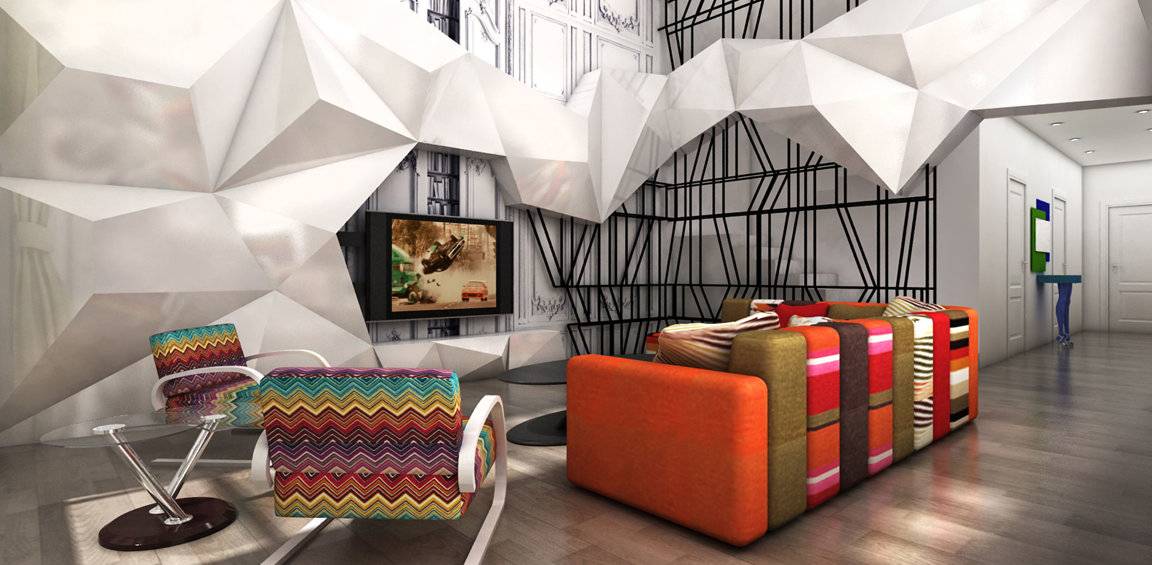 Показательным является оформление гостиной в стиле поп-арт, для которого используются следующие идеи: