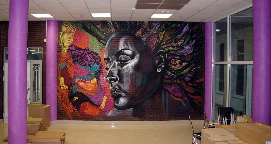 Цветовая гамма. Она наполнена сочными красками. Основой выступают стены, покрашенные в белый, с которыми эффектно контрастируют яркие плакаты и граффити. Другой вариант — когда стены отличаются друг от друга цветом и фактурой. Например, одна из них может быть выкрашена в белый, другая оштукатурена, третья разрисована граффити, четвёртая оклеена обоями.