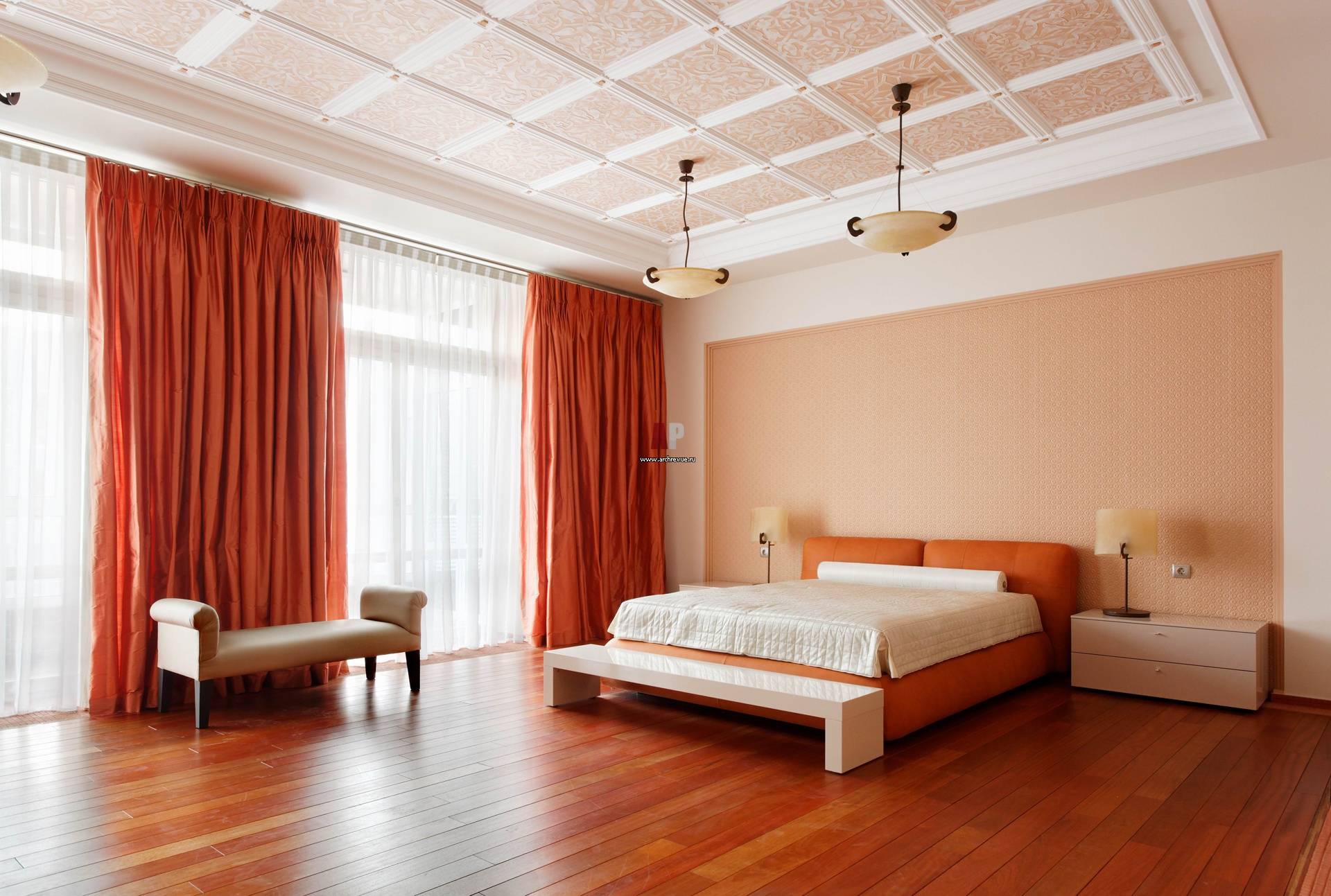Основное, что нужно учитывать здесь – это его способность дать Вам расслабиться и отдохнуть, то есть он не должен заострять на себе Ваше внимание. Даже если у Вас небольшая комната, зеркальный потолок будет здесь не очень уместен