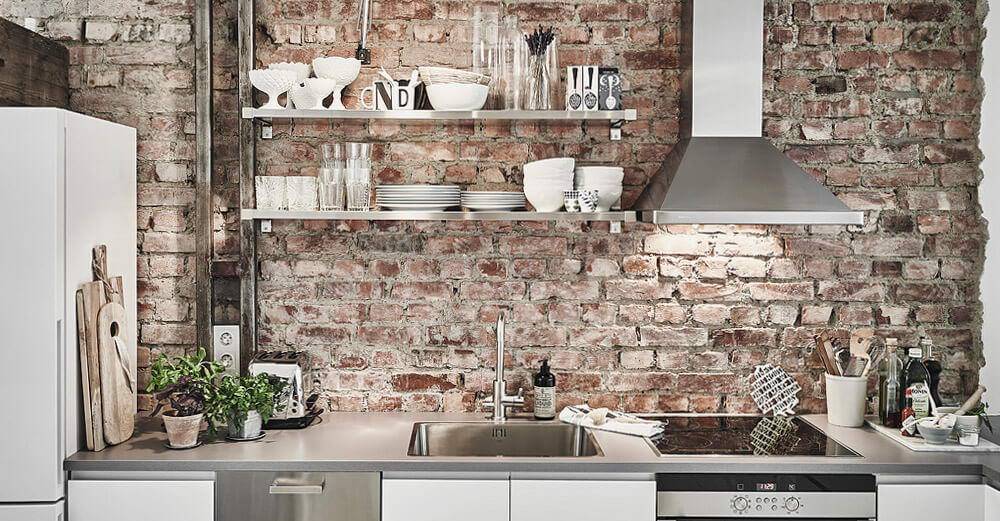 Кирпич натуральный или из гипса абсолютно не подходит для фартука из-за его пористой структуры: вся жидкость и грязь будут как губка впитываться внутрь, а очистить это потом будет очень проблематично.
