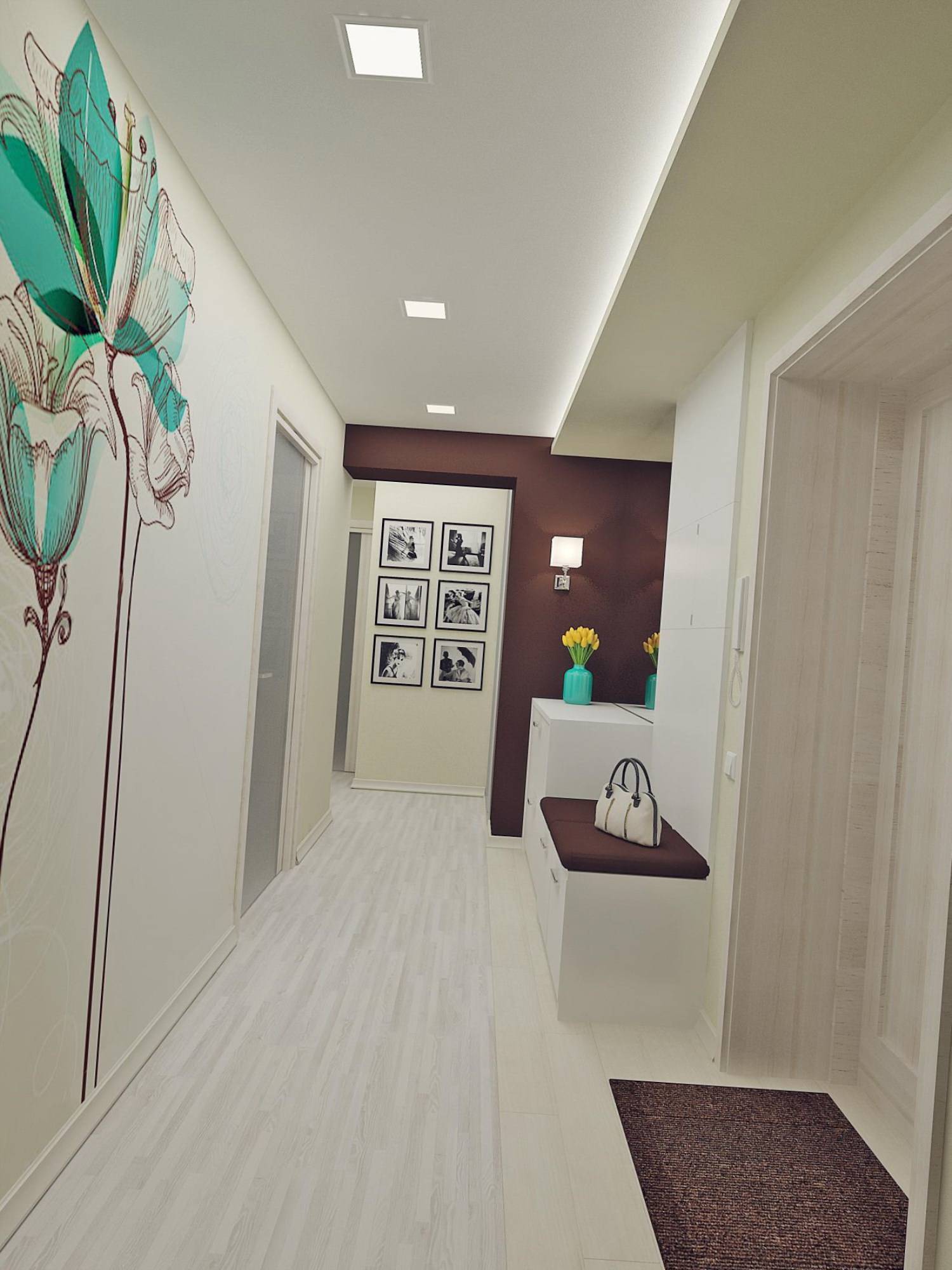 Подборка материалов для пола, стен и потолка для современной прихожей должна упираться в такие параметры, как качество, долговечность и удобство. Стены лучше всего покрыть однотонными моющимися обоями с гладкой поверхностью. Оттенки выбирать мягкие, нераздражающие. Как вариант, стены можно покрасить матовой акриловой краской.