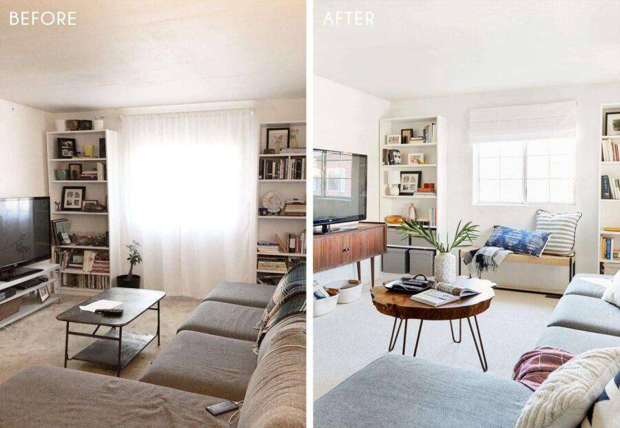ФОТО: elfo.proПисьменный стол без полок и ящиков создаёт ощущение дополнительного пространства. А полки для книг и телевизора лучше выбирать закрытые, чтобы не было видно, как много вещей хранится внутриФОТО: interior-blog.ruЕсли подобрать мебель одного цвета со стенами и полом, то квартира будет казаться пустой. Решите заранее, устроит ли вас такой вариант, или лучше разбавить интерьер хотя бы двумя яркими пятнами