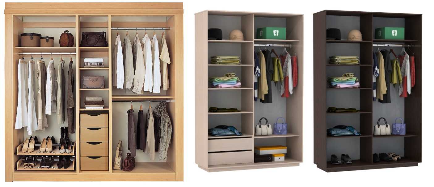 Для пальто и другой длиной одежды потребуется отделение, куда можно будет повесить вешалки. Если ширина шкафа 60 см и более, ставят обычную перекладину, на которую цепляют плечики (вешалки). Ее можно разместить на уровне плеча или чуть выше.