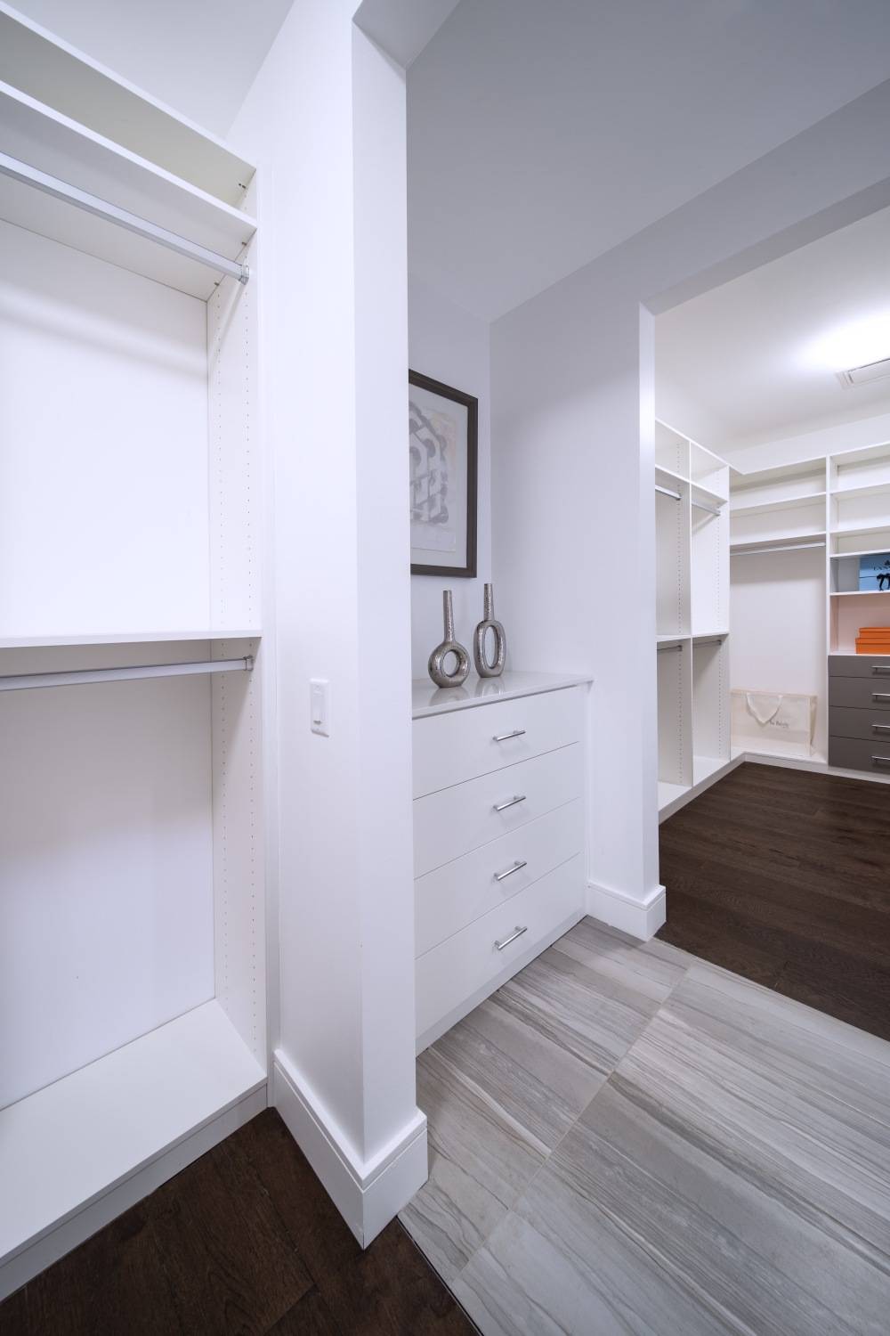 - Поклонникам тотального минимализма понравятся интерьеры с большими вместительными встроенными шкафами, которые позволят вам спрятать все вещи.