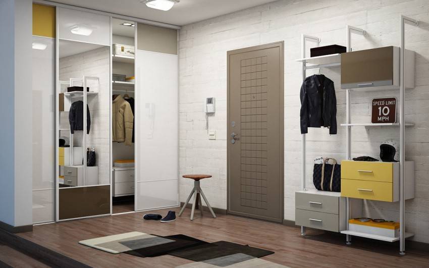 Однако если коридор небольшой – лучше повесить крючки для верхней одежды и поставить открытые системы для хранения обуви.