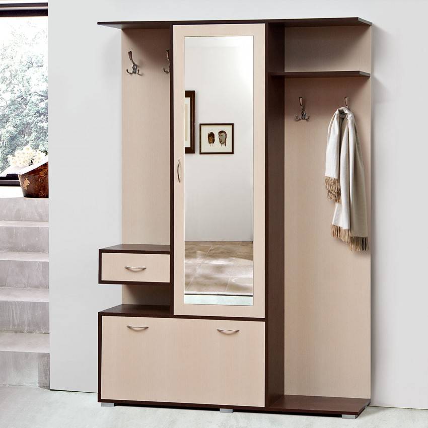 - Неотъемлемым аксессуаром выступает зеркало, которое может быть как отдельным предметом интерьера, так и частью шкафа либо вешалки.