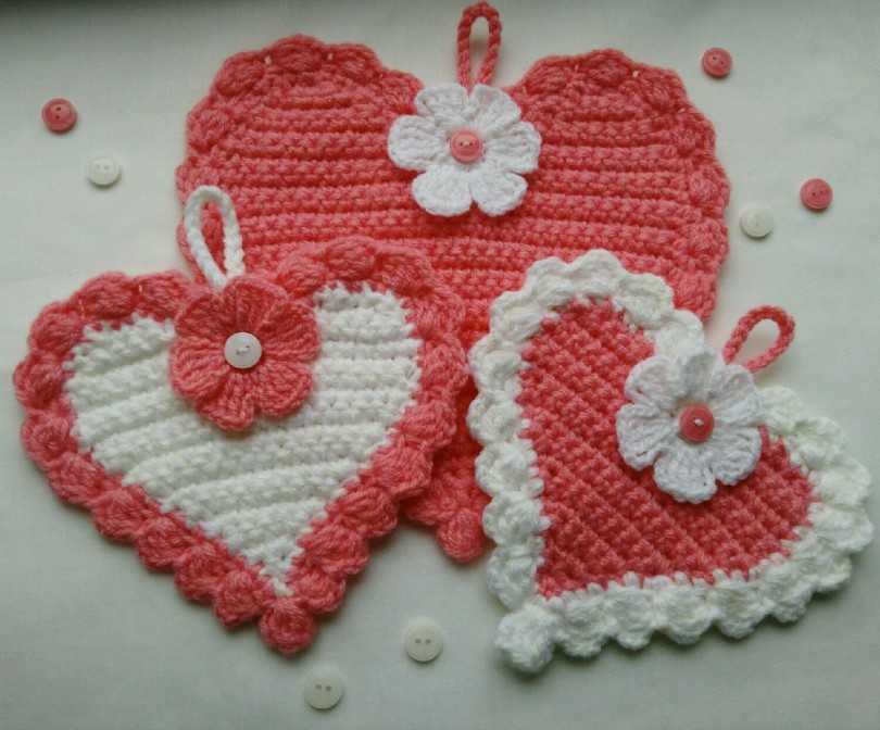 Прихватки крючком в виде яблока Схема вязания и описание изделий