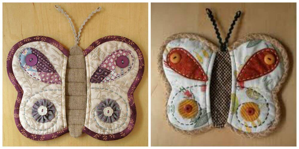 В выкройке прихватки бабочки в натуральную величину есть своя особенность — она делается специально, чтобы потом ее одевать только на пальцы рук. Углубление не глубокое, а при движении пальцев, находящихся в «бабочке», можно уловить взмах ее крылышек. С ней не страшны никакие ожоги пальцев и ладони.