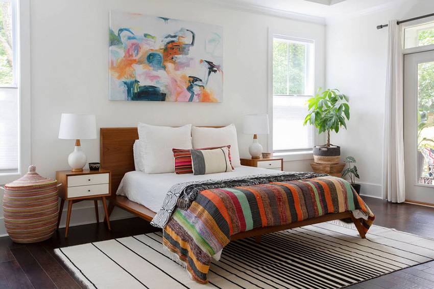 Обычная конфигурация спальной комнаты – это кровать с головной и