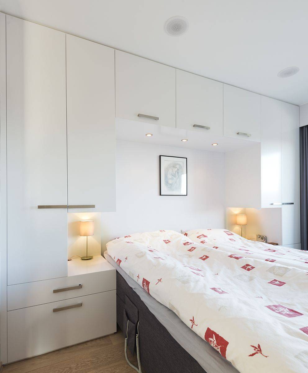 | Рис. 4. Множество шкафов с горизонтальным открыванием, изголовье кровати фактически является составной часть шкафа вдоль стены |