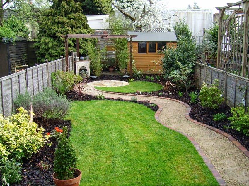 — прямоугольный участок, вытянутый в одну из сторон. Такой тип требует к себе повышенного внимания. Если участок большой, лучше всего в первую очередь посадить зеленую изгородь по периметру и оформить палисадник. Задний двор можно обустраивать постепенно, начав с террасы и клумбы при ней.