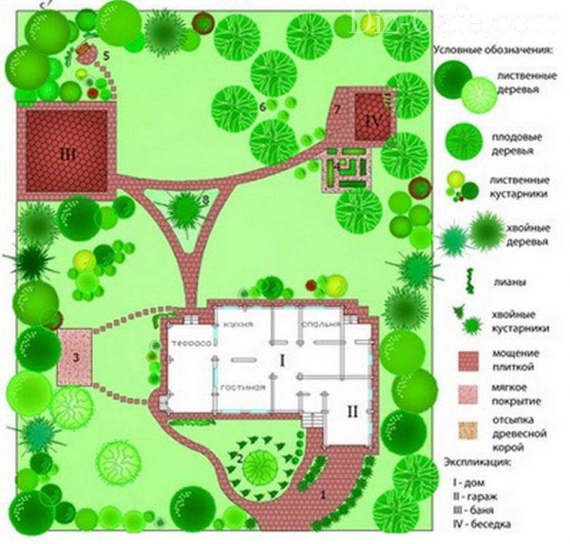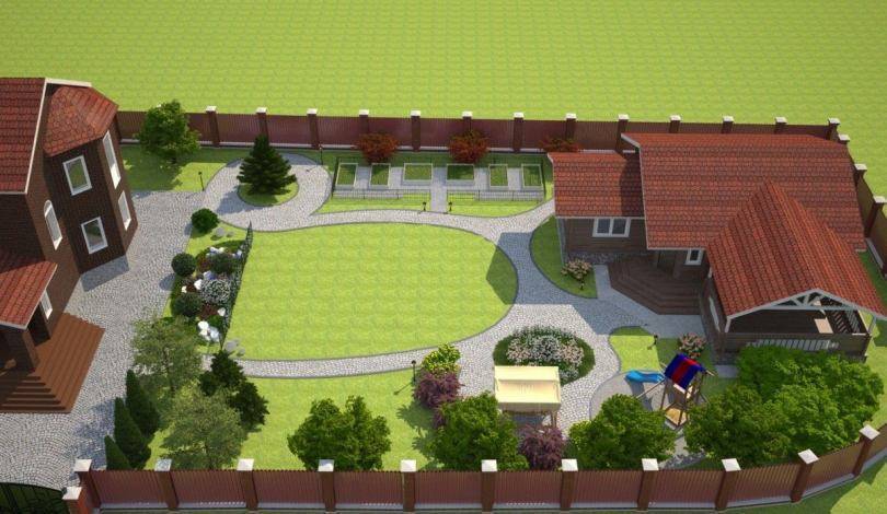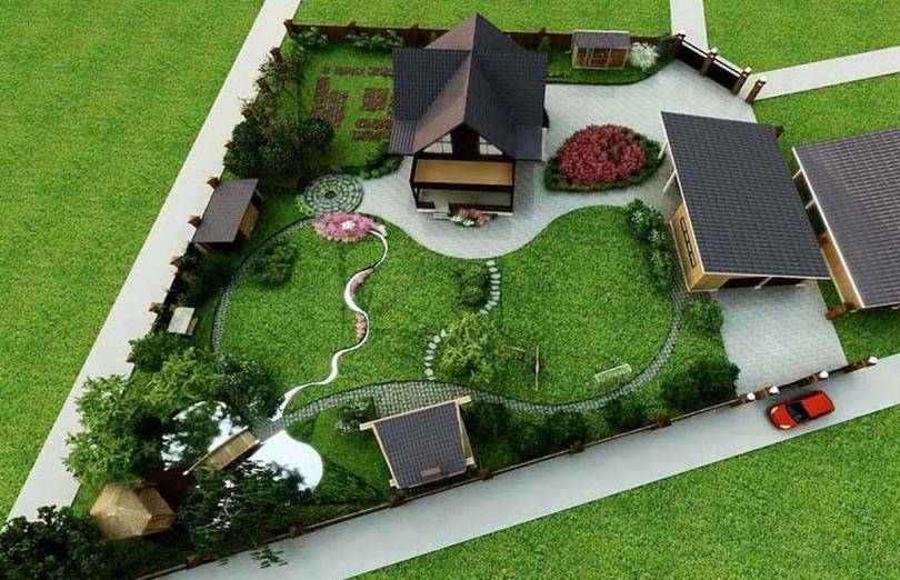 Грамотное зонирование. Результатом самостоятельной планировки нередко становится нерационально размещение построек и дорожек, а также непродуманное расположение зон (когда зона отдыха или детская площадка оказывается рядом с парковкой).