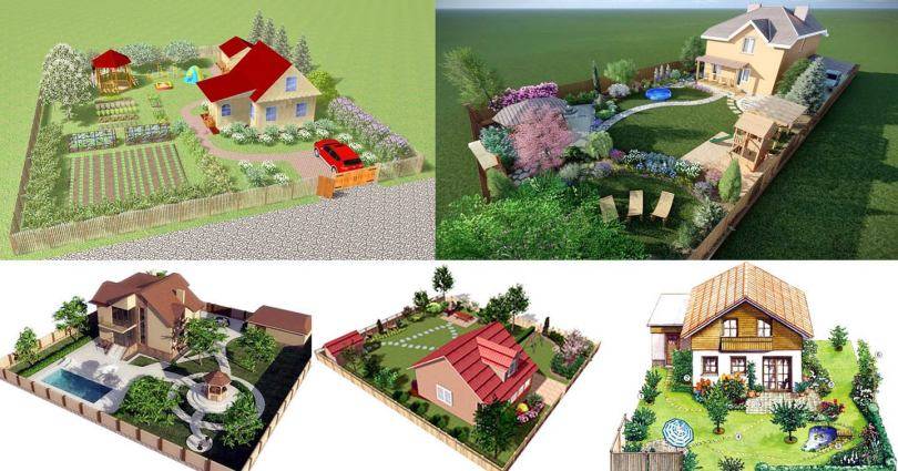 Все участки можно разделить на три варианта, каждый из которых имеет в большинстве случаев вполне типичную планировку: