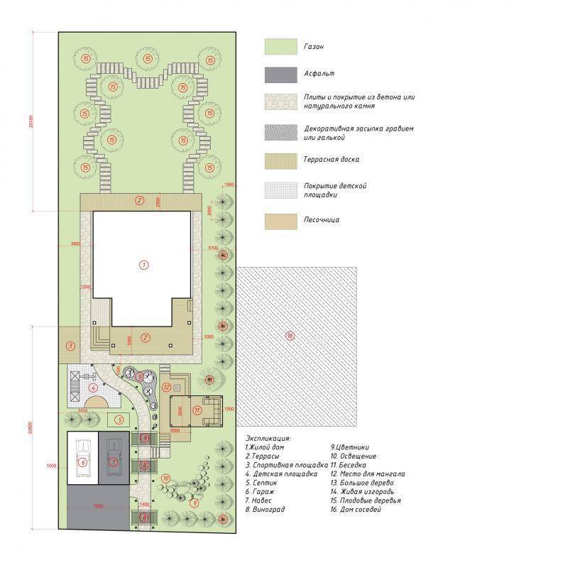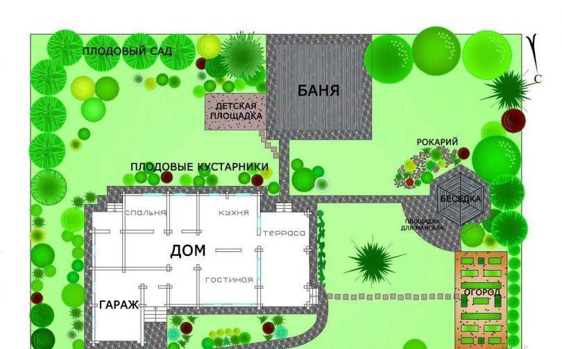 Способ планировки может быть совершенно любым, в зависимости от личных предпочтений владельцев, но чаще всего схема планировки участка зависит от его формы: