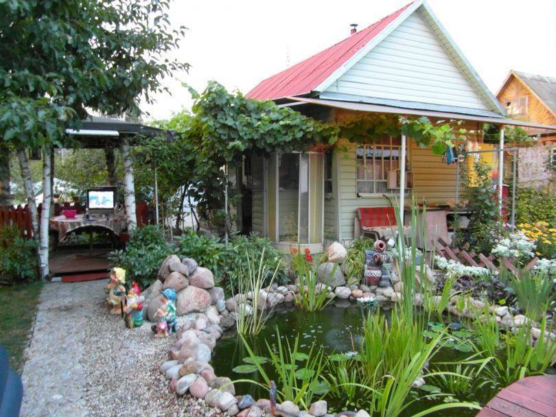Такой участок имеет дом для сезонного проживания. На свободной территории можно расположить малые архитектурные формы.