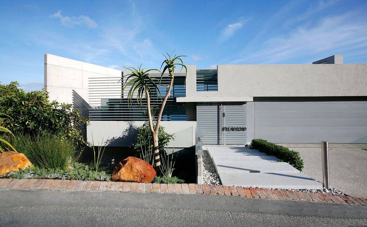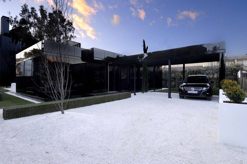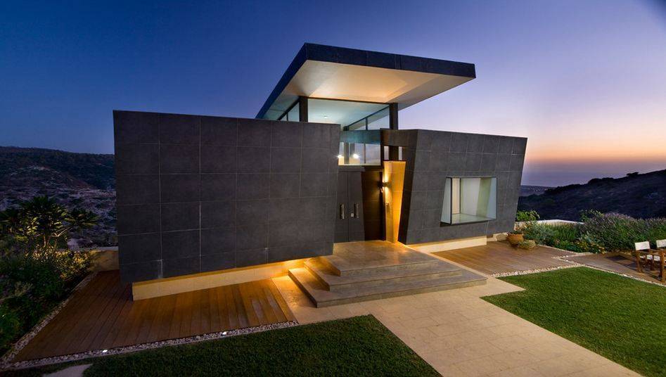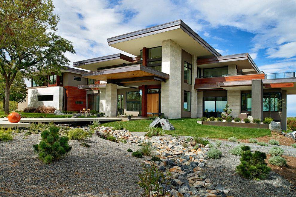 Что касается цвета, то идеальный вариант – это сочетание черного, белого, серого или мраморного оттенков. Яркие детали и рисунки здесь будут неуместными, так как характерны для других стилей. Несмотря на такую категоричность, вокруг дома приветствуются газоны. Но все же они должны меть геометрическую форму. Зачастую на территории не делают ландшафтный дизайн и не высаживают цветы.