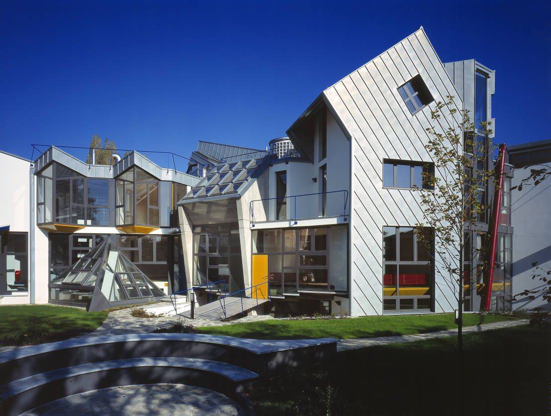 Индустриальное ответвление hi-tech построено на применении элементов промышленного назначения: труб, кронштейнов, арматуры, стекла, металла и всего, что связано с производственной тематикой. Основой здания является железобетонный или металлический каркас, а все коммуникации, лифты, лестницы и т.п. выносятся на всеобщее обозрение.