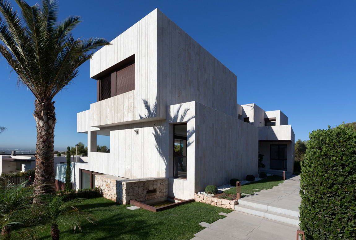 В свою очередь, дерево практически не используется, за исключением редких случаев. К примеру, отделка деревом позволяет смягчить строгость линий фасада. А также помогает дому органично выглядеть на фоне природы.