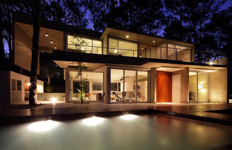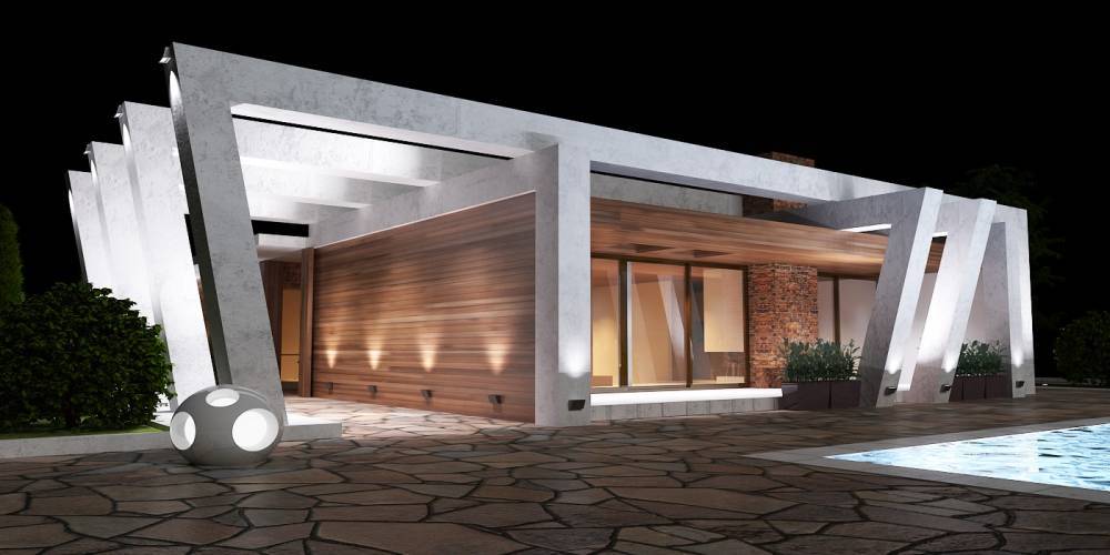 Еще на этапе проектирования специалист в мельчайших деталях продумывает освещение дома. Свет украсит собой минимализм архитектуры, сделает небольшой дом больше, придаст конструкции воздушность и легкость