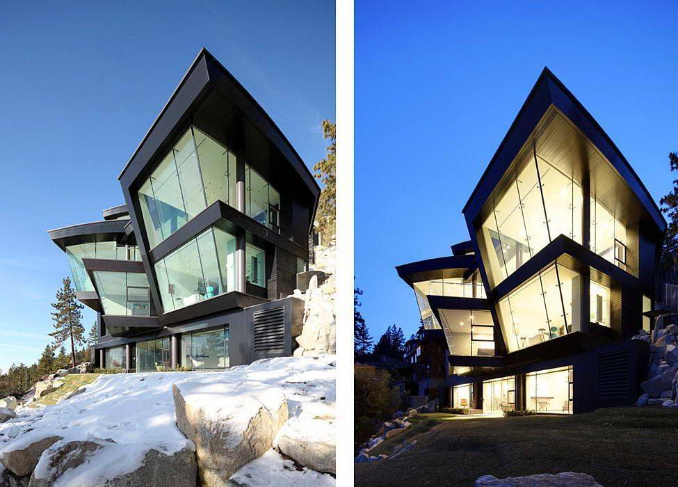Несмотря на то, что в данном направлении все используется рационально и с учетом экономии ресурсов, фасад дома все же может подсвечиваться. Сочетание с зеркальными поверхностями позволяет создать потрясающе красивое мерцание, которое подчеркивает красоту дома.
