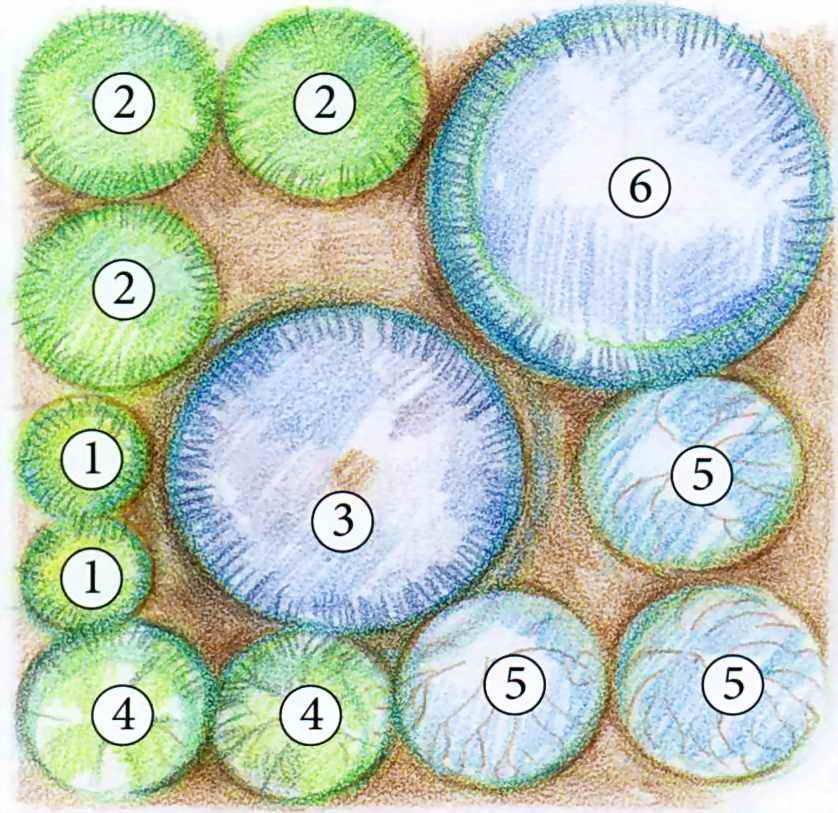 Важно! Обязательно учитывайте необходимые отступы, чтобы исключить гибель или увядание растений из-за недостаточной территории для развития.