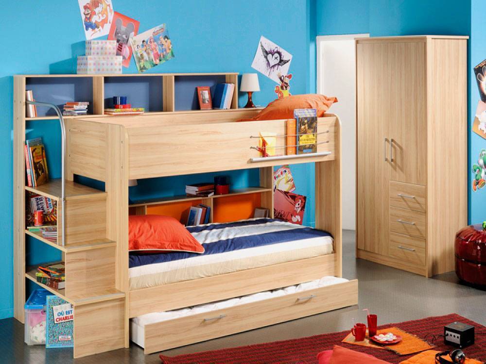 Если сразу трем детям приходится делить пространство в одной комнате, то двухъярусная кровать для трех мальчиков – лучший выход из положения.
