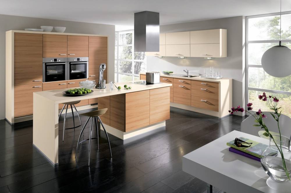 Островной вид подходит только для просторных помещений. Его можно устанавливать в частном доме или в совмещенной с гостиной кухне